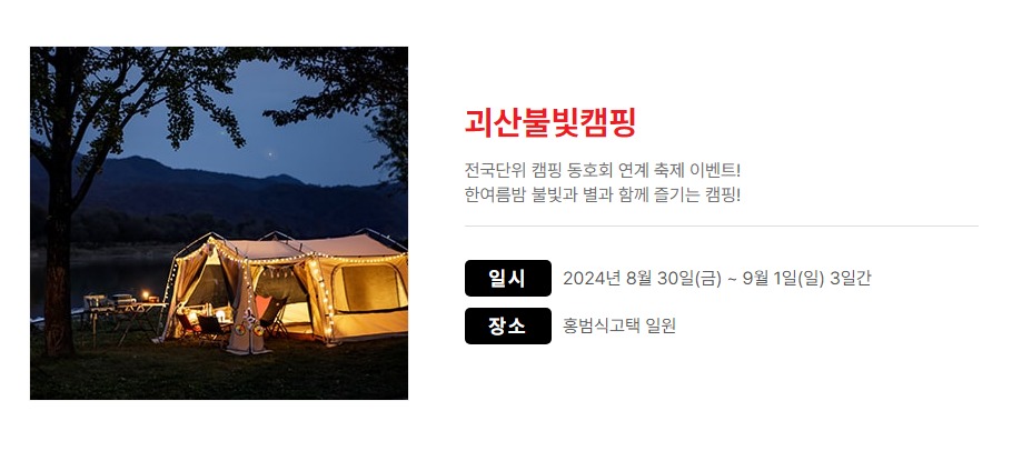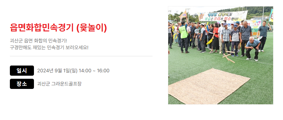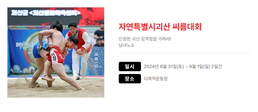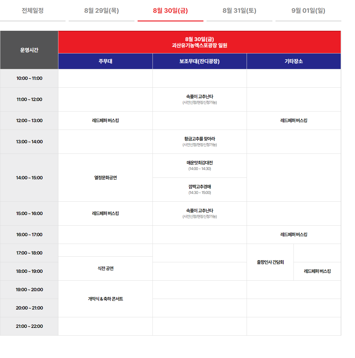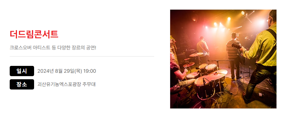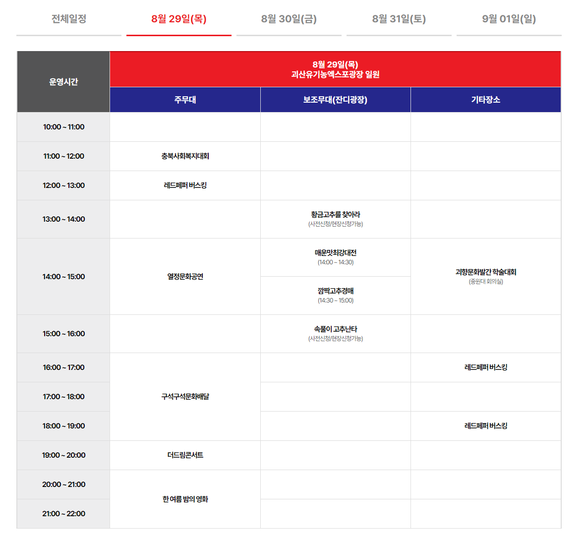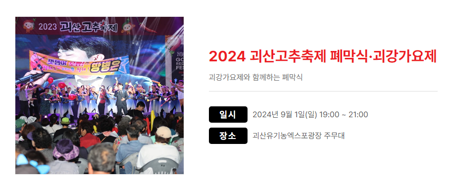 장소 : 충청북도 괴산군 임꺽정로 113 괴산유기농엑스포 광장 일원