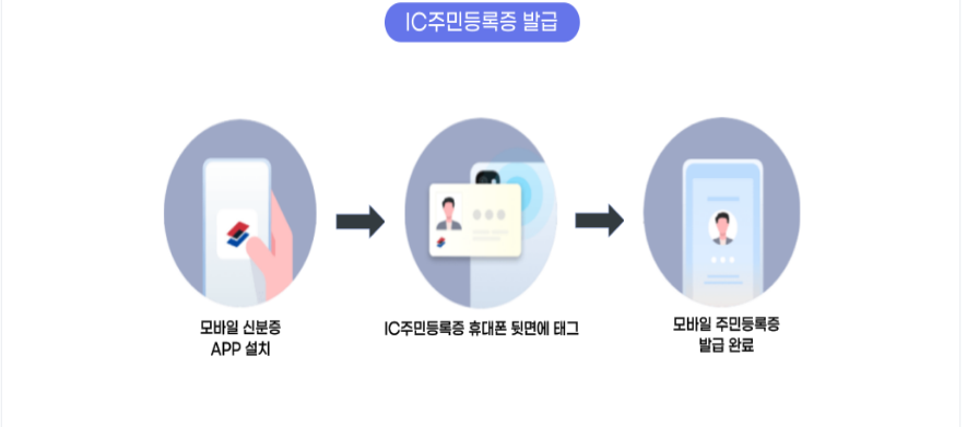 2. 실물 주민등록증을 IC주민등록증으로 발급받은 사람은 휴대전화를 IC주민등록증에 태그하면 모바일 주민등록증을 발급받을 수 있습니다. 이 경우에는 휴대전화를 변경해도 주민센터를 방문하지않고 모바일 주민등록증을 재발급 받을 수 있습니다. 하지만 IC칩 비용 5,000원을 부담해야 합니다.