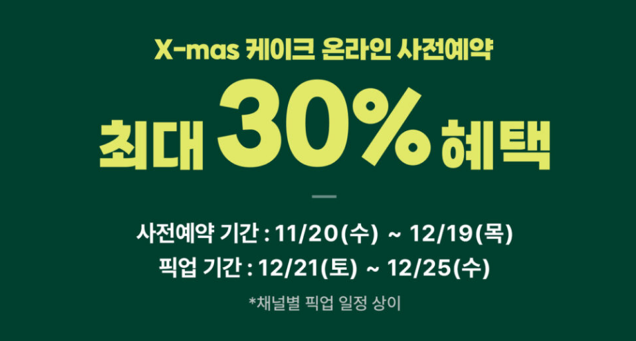 <파리바게트 크리스마스 케이크 사전예약 할인>